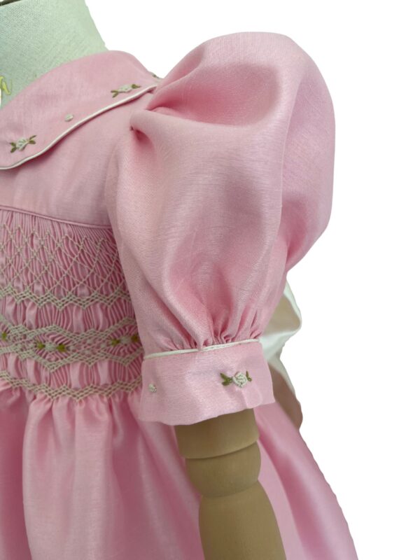 Todo el bordado y los detalles están elaborados completamente a mano, reflejando el cuidado artesanal y la dedicación que distinguen a cada una de nuestras prendas.