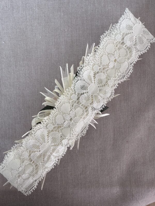 Banda color hueso elástica suave, hecha a mano con flor de pasta rosa pastel, flor de papel blanca, perla artificial blanco nacarado. Medida 35 a 40 cm. Ancho de elástico 3.5 cm.