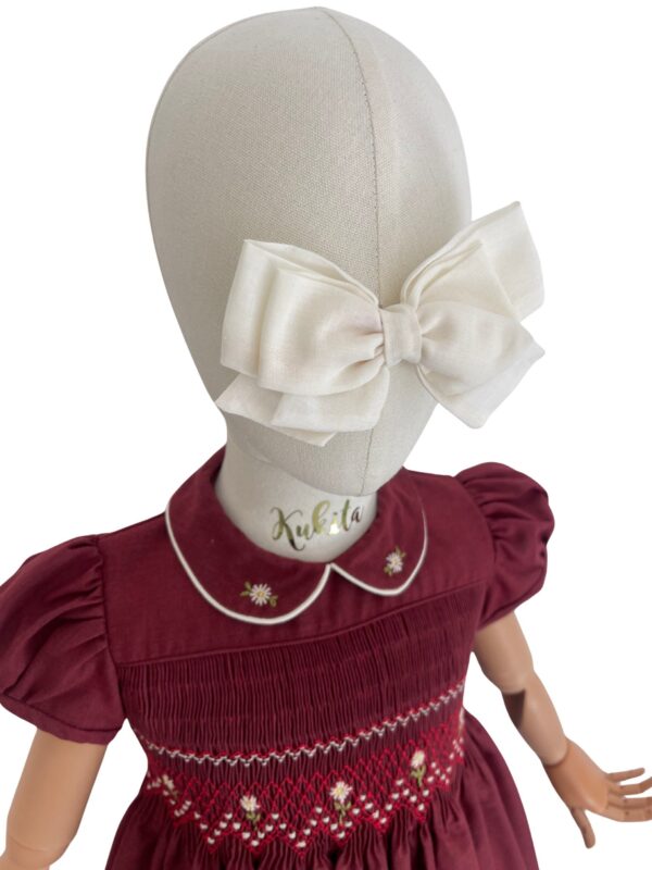 Encuentra el moño para el cabello aquí: MOÑOS LISOS MUSELINA HUESO👈