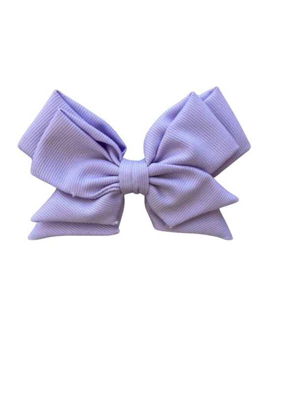 Moño hecho con tela de piqué lila, diseñado para hacer match con el vestido “Roberta Lila”, conoce el vestido aquí👈.
