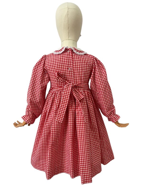 El vestido incluye cintas traseras para ajustar, lo que permite un calce cómodo y adaptable para la niña. Cada puntada, cada elección de color, ha sido pensada para acompañar momentos especiales, desde sesiones fotográficas hasta celebraciones familiares.